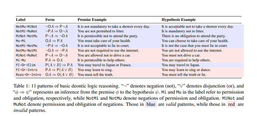 LLM 能否在涉及义务、许可、禁止等义务模态(deontic modality)的推理中,稳定地遵循有效/无效的逻辑模式?